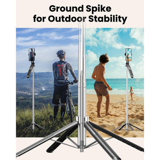 LINBER S25N Phone Tripod Selfie Stick with Ground Spike, 71" Portable Smartphone Tripod with Detachable Wireless Remote, Extendable Tall Travel Tripod for Vlogging, Live Streaming, Video Recording